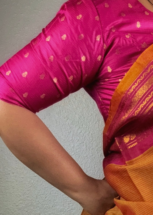 Banarasi Brocade Blouse - Mustard Yellow / Maroon