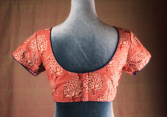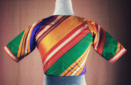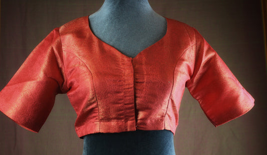 Banarasi Brocade Blouse - Turquoise blue/ Peach