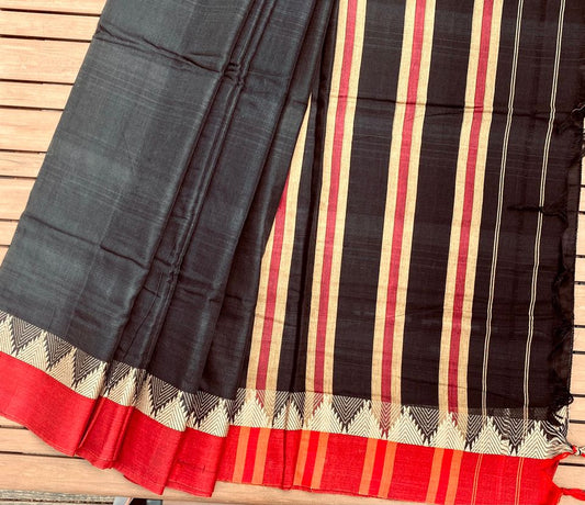 Narayanpet Handloom Saree - Dark Gray w/ Red