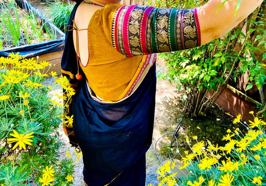 Narayanpet Handloom Saree - Black w/ Pink, Yellow Peacock