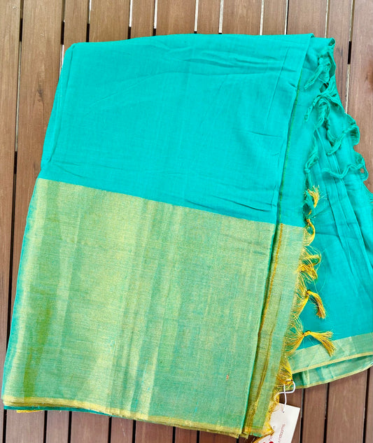 Narayanpet Handloom Saree - Teal w/ Tissue border