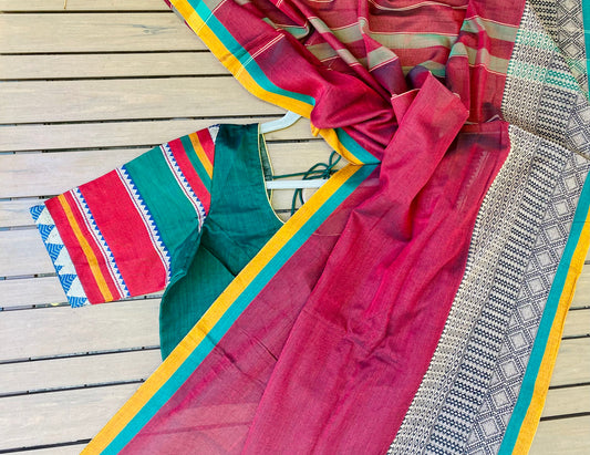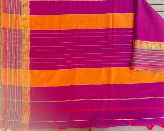 Narayanpet Handloom Saree - Magenta w/zari stripes