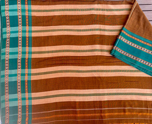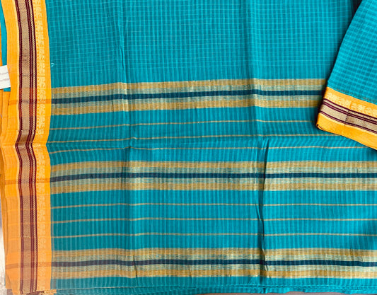 Narayanpet Handloom Saree - Teal checks w/ Mustard