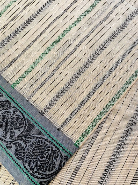 Kanjivaram Cotton Saree - Off white w/ Gray