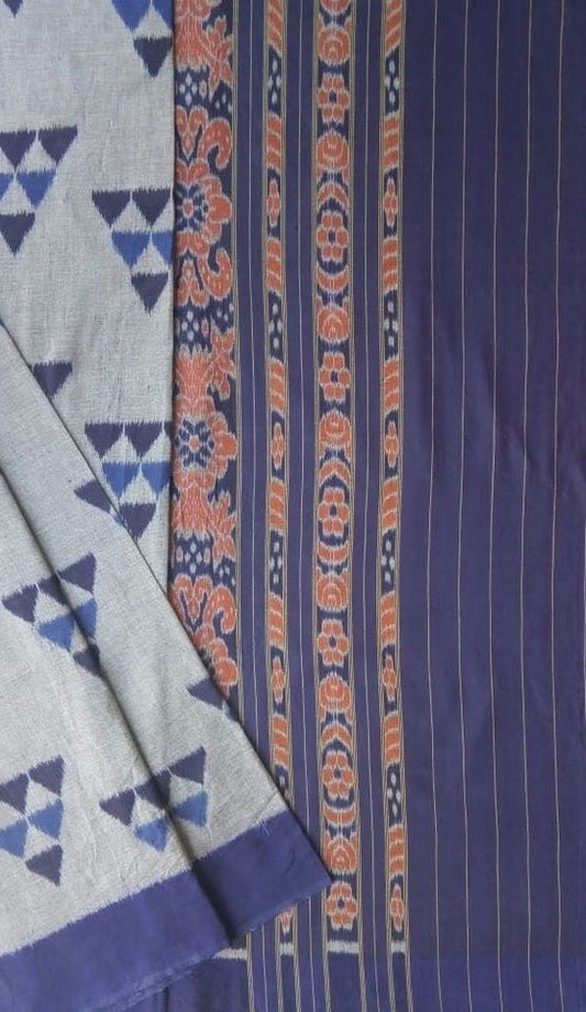 Khandua Ikat Handloom Saree - Gray w/ Blues
