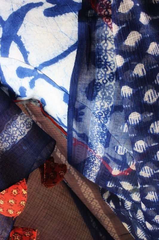 Kota Doria Saree w/ Bagru Hand block Print-Indigo