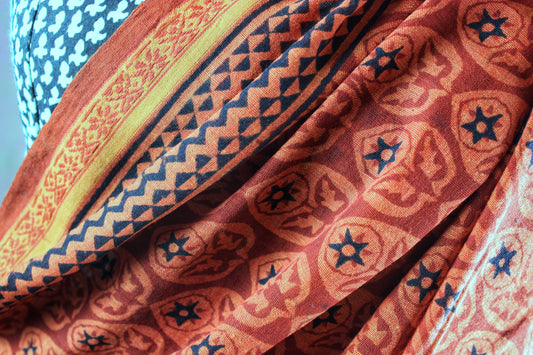 Khadi Saree w/ Bagru Hand block Print- Red