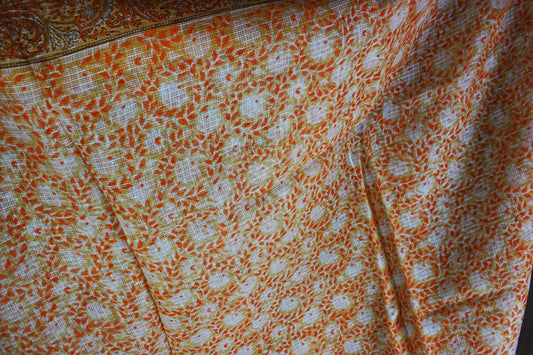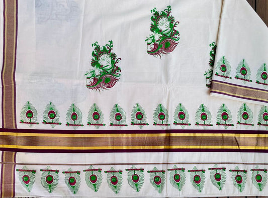 Kasavu Handloom Saree - Off White Hand block print