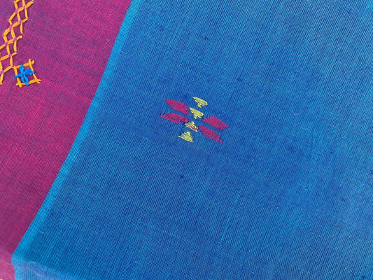 Khadi Saree w/ Lambani embroidery - Blue w/ Fuchsia