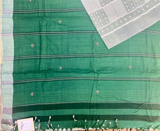 Khandua Ikat Handloom Saree - Gray w/ Bottle green