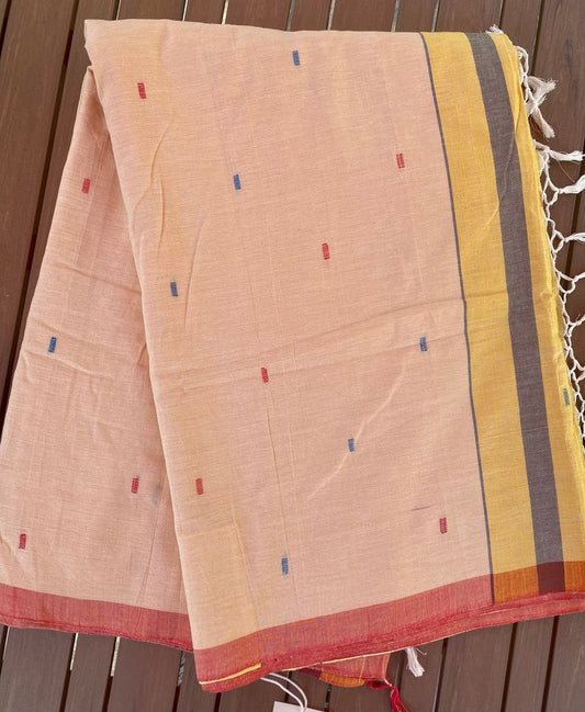 Mulmul Saree w/ Bagru Hand block Print- Pink