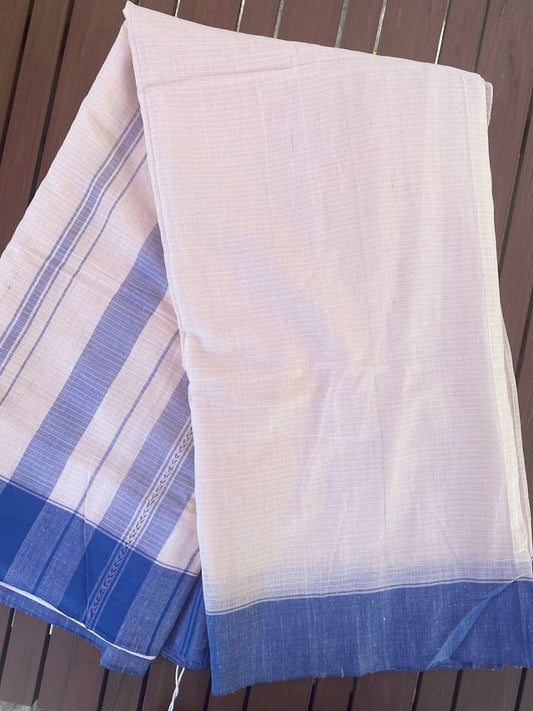 Muslin Jamdani Handloom Saree - White w/ Blue