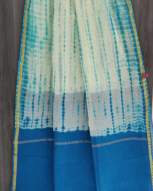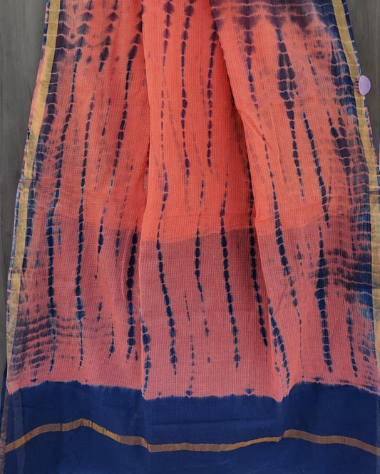 Kota Doria Saree w/ Shibori dye- Orange/ Indigo