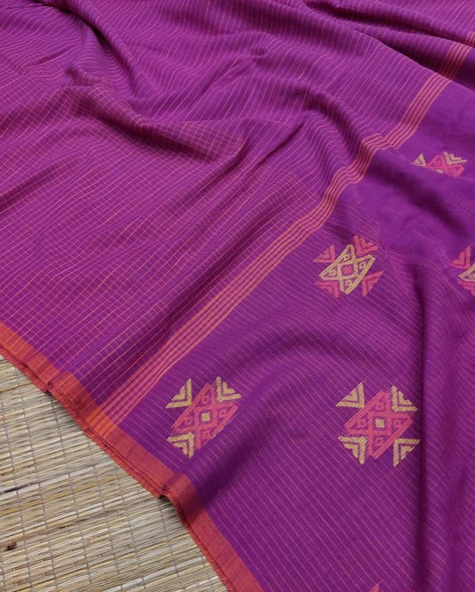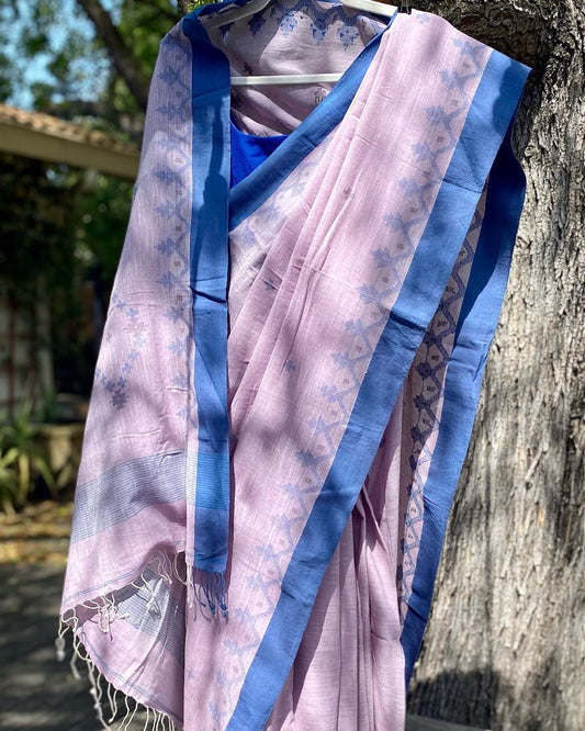 Muslin Jamdani Saree - Lavendar w/ Blue