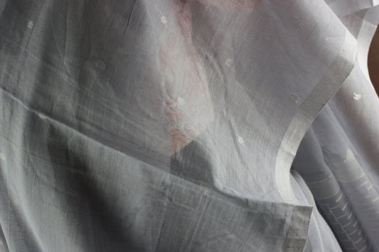 Muslin Jamdani Handloom Saree - Cloudy Gray