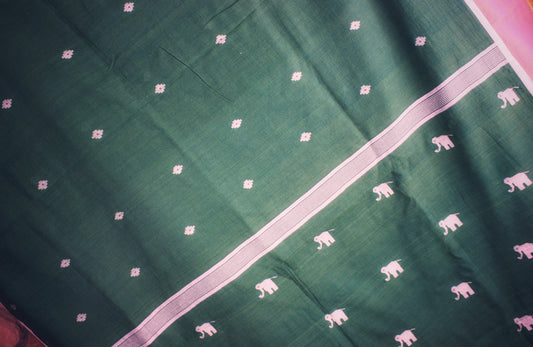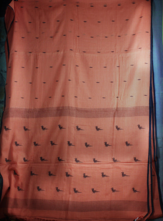 Muslin Jamdani Handloom Saree - Turquoise blue