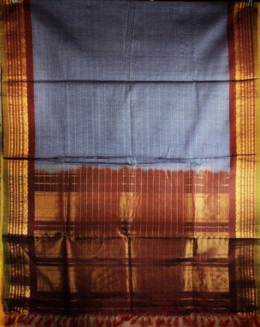 Gadwal Handloom SICO Saree - Blue gray/ Maroon