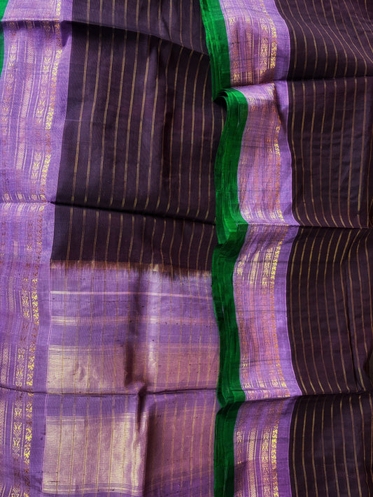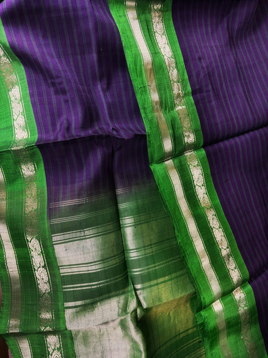 Gadwal Handloom SICO Saree - Eggplant/ Green