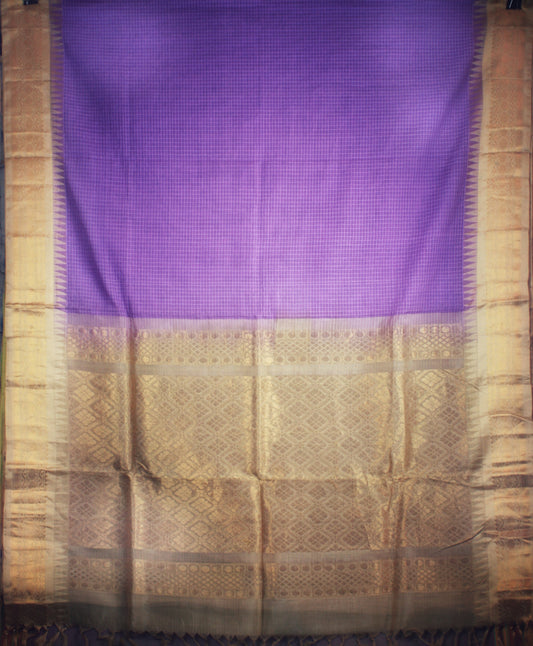 Gadwal Handloom Cotton Saree - Lavendar/ Cream
