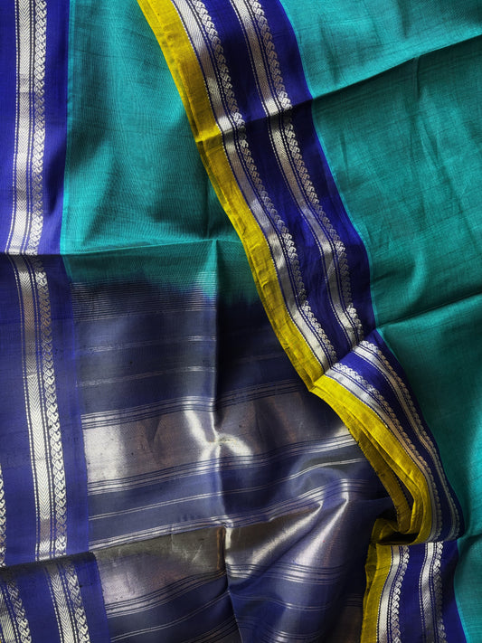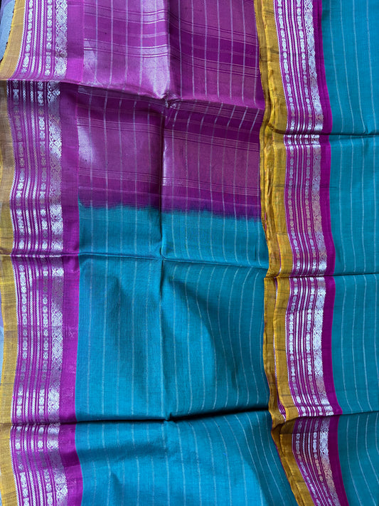 Gadwal Handloom SICO Saree - Teal/ Pink Silver