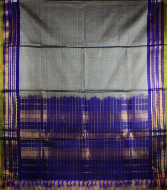 Gadwal Handloom SICO Saree - Gray/ Blue