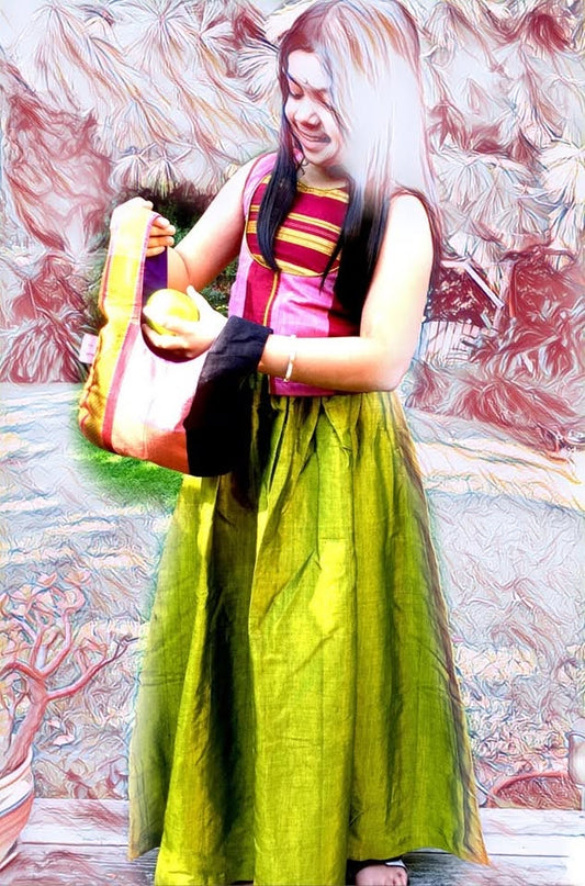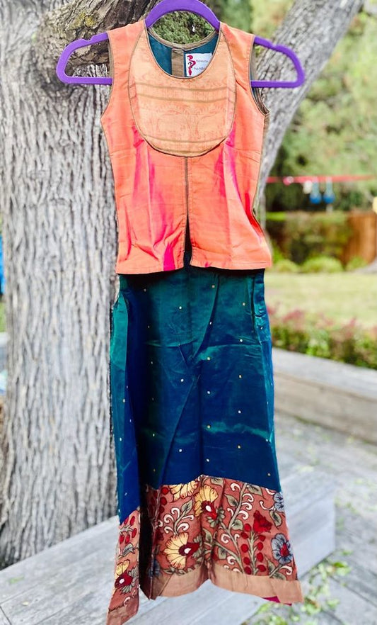 Girl's Ilkal Handloom Langa (Full skirt) + Top set