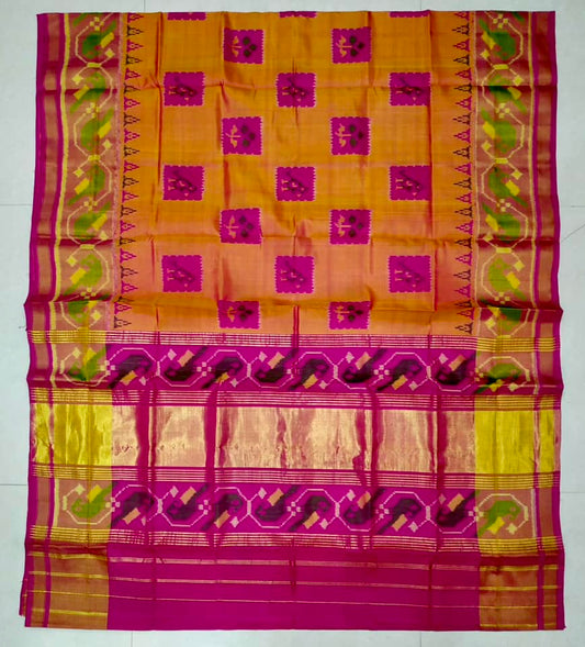 Rajkot Patola Ikat Pure Silk Saree - Orange/Pink