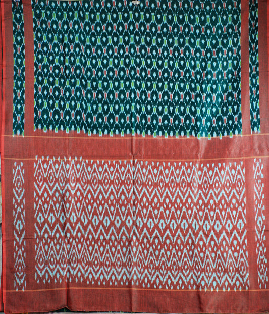 Pochampally Ikat Silk Cotton Saree - Green/ Red