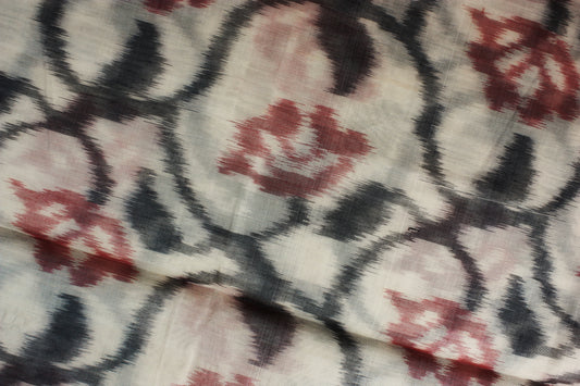 Khandua Ikat Handloom Saree - Taupe w/ White