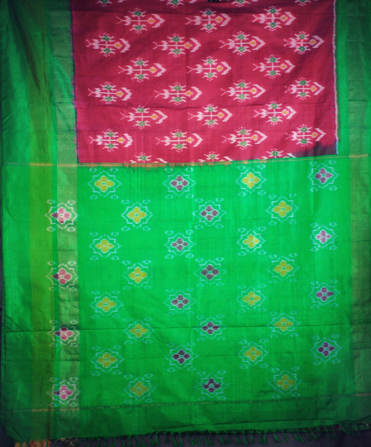 Pochampally Ikat Pure Silk Saree - Fuchsia Pink /Light green