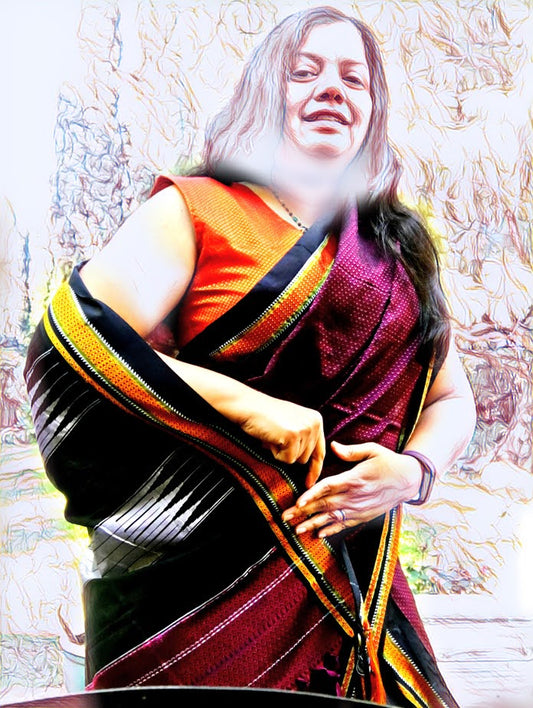 Ilkal Handloom Saree - Stripes w/ Blue border