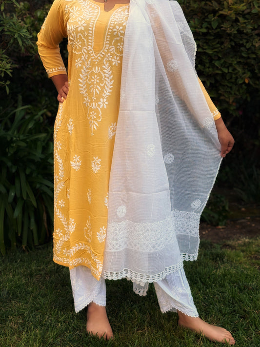 Chikankari Hand embroidery Cotton Kurta + Palazzo Set
