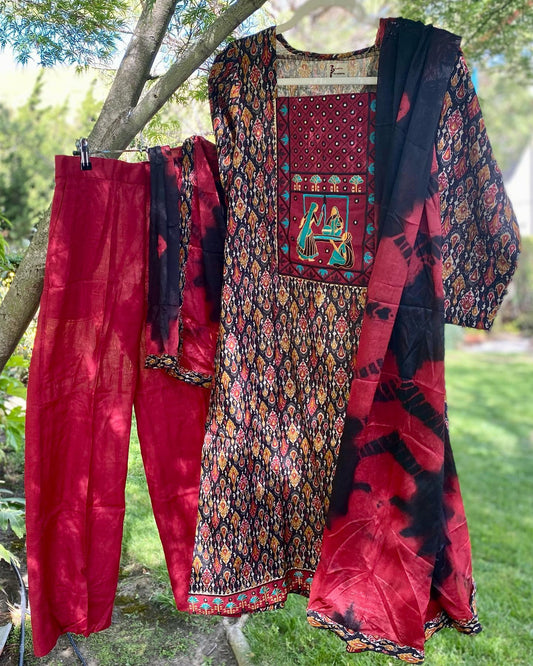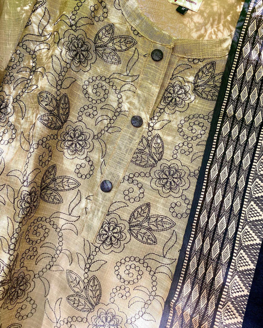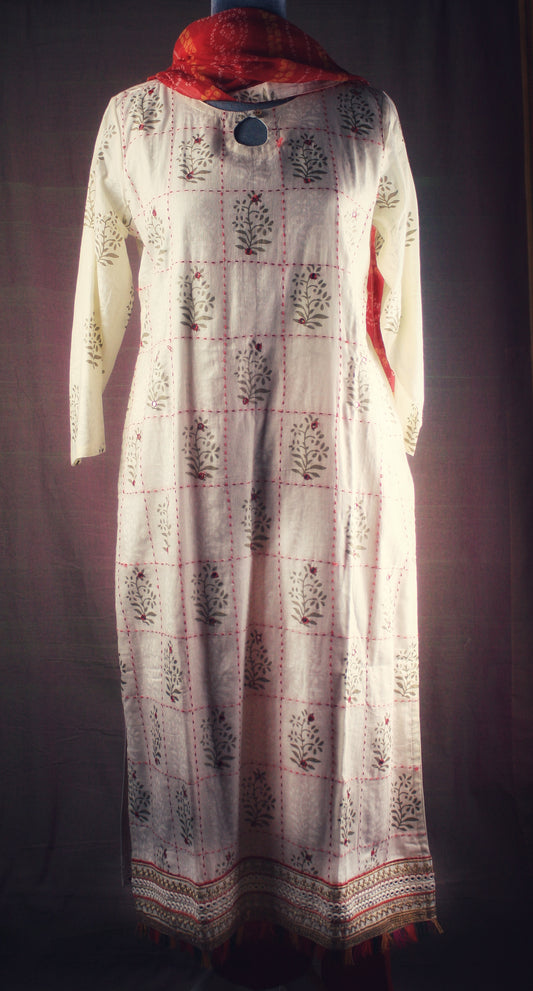 Chikankari Hand embroidery Cotton Kurta + legging Set