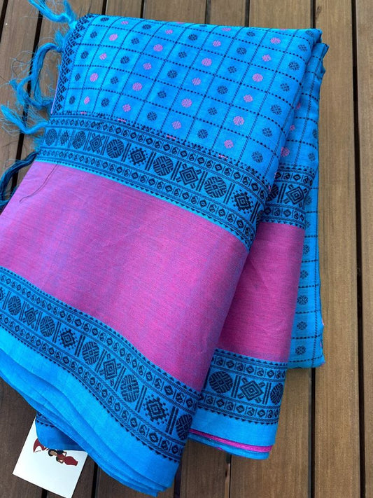 Venkatagiri Silk Saree - Sky blue w/ Teal