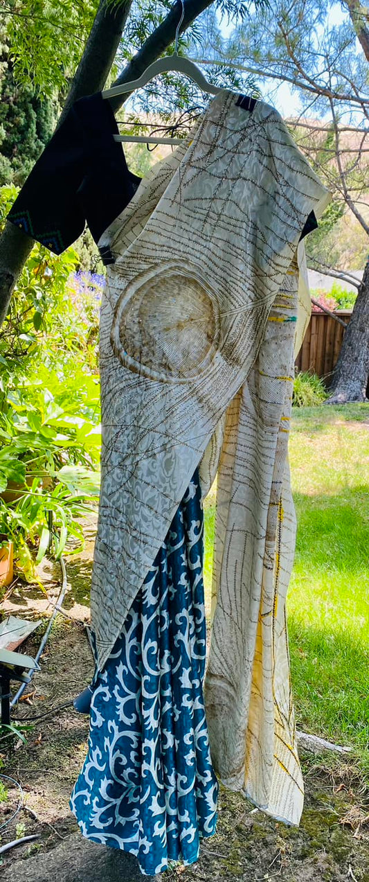 Shibori Natural Dye Kota Silk Saree - Yellow Indigo