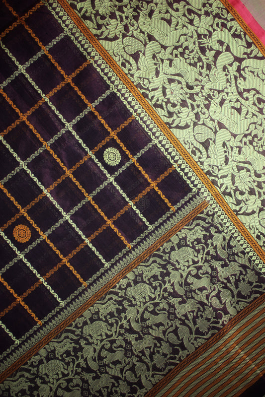 Venkatagiri Silk Saree - Burgundy w/ Majenta