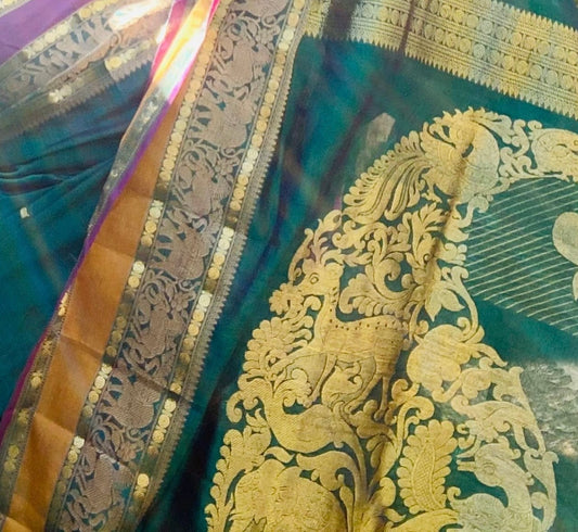 Kanjivaram Silk Cotton Saree - Teal Vanasingaram