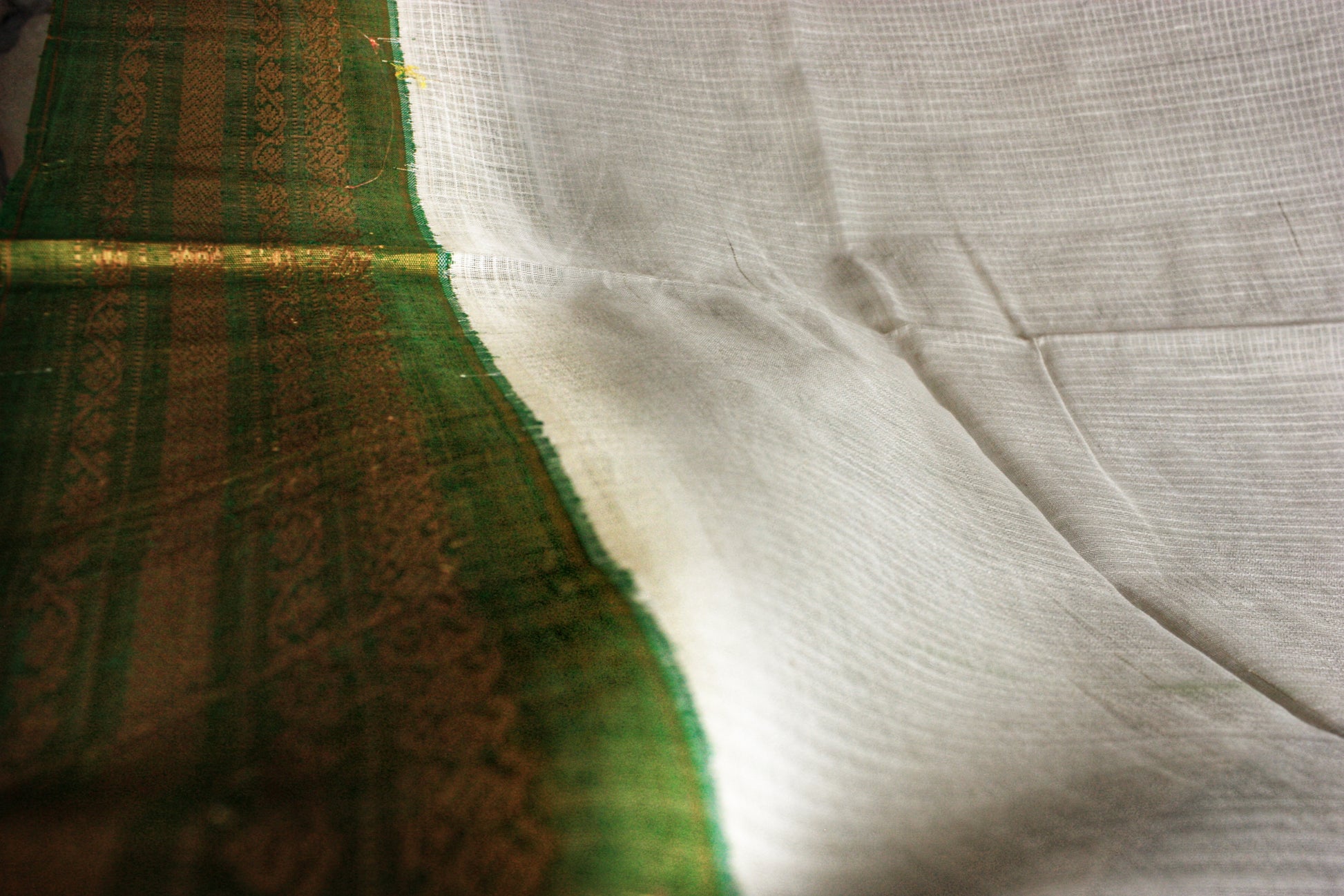 Gadwal Handloom Cotton Saree - White / Mehendi green