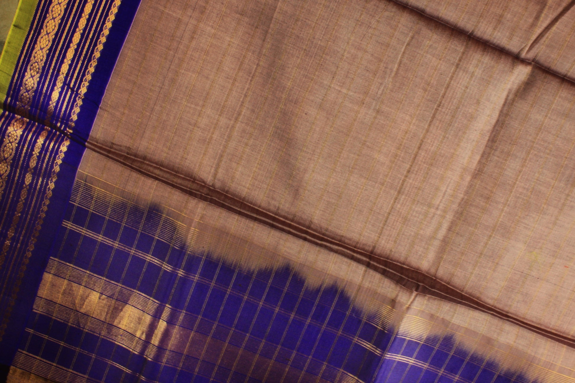 Gadwal Handloom sarees are from the town of Gadwal in Telengana and date back to the 17th century. Typical Gadwal Handloom sarees have a cotton body and silk border and Pallu. They are known for their well- crafted Kuttu borders which are traditionally woven in the interlocked-weft technique (called Kuppadam or Tippadamu locally) and often with Kotakomma (also called Kumbam) in the borders. This allows for borders and Pallus to be woven separately and then attached during weaving resulting in beautiful contrast color combinations.The skilled weavers of Gadwal hold the rare honor of creating the “Sesha Vastram” for Lord Venkateswara during the annual Brahmotsavam festival in Tirupati.