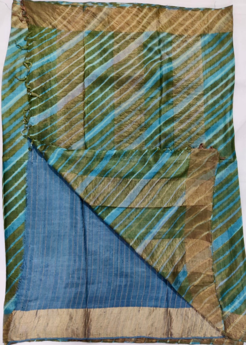Hand crafted Leheria Tie-Dye Tussar Silk Saree w/Zari - Teal