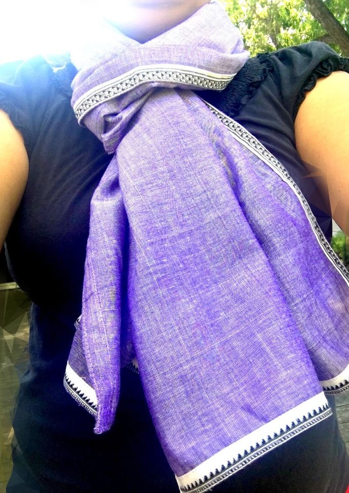 Handloom Cotton Stole in a soothing Amethyst color, embellished with a thin, woven Ilkal border.