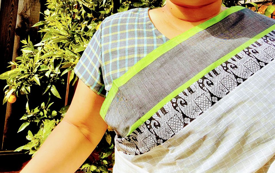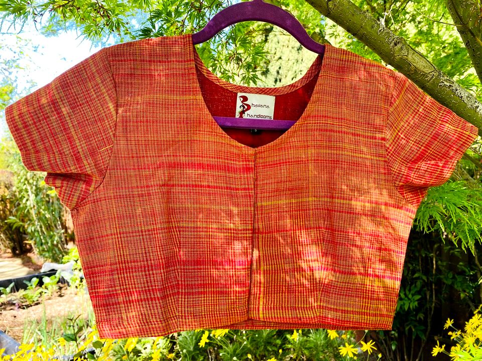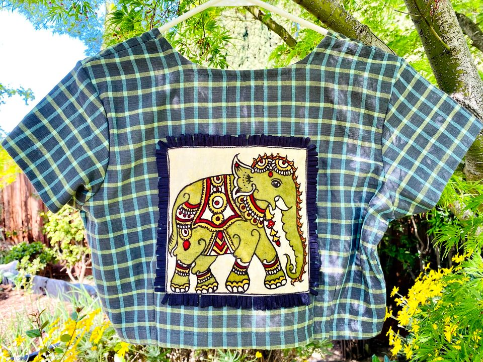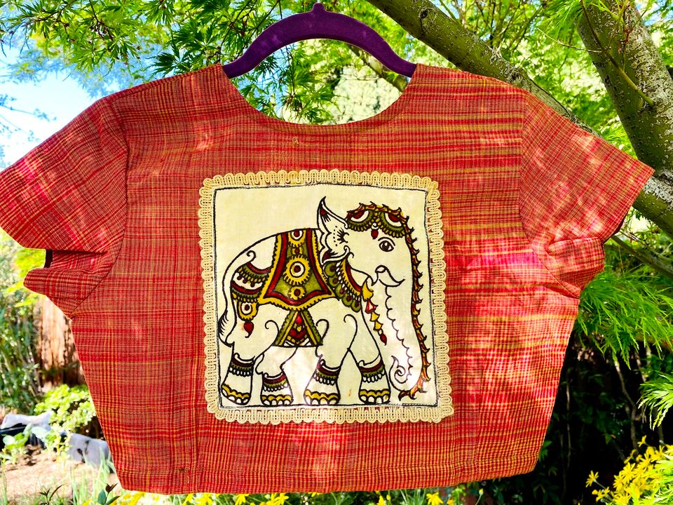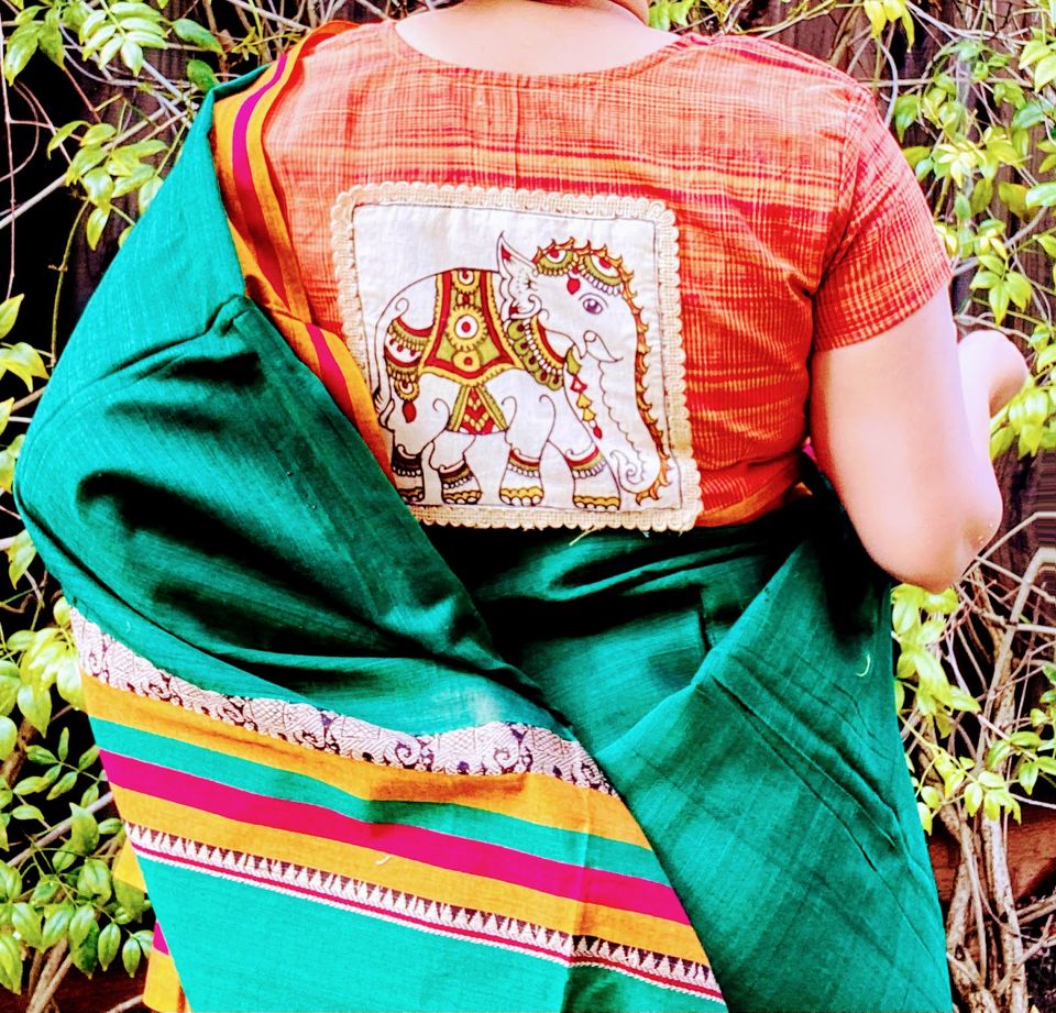 Hand spun Handloom blouse with Hand painted kalamkari elephant patch on the back.