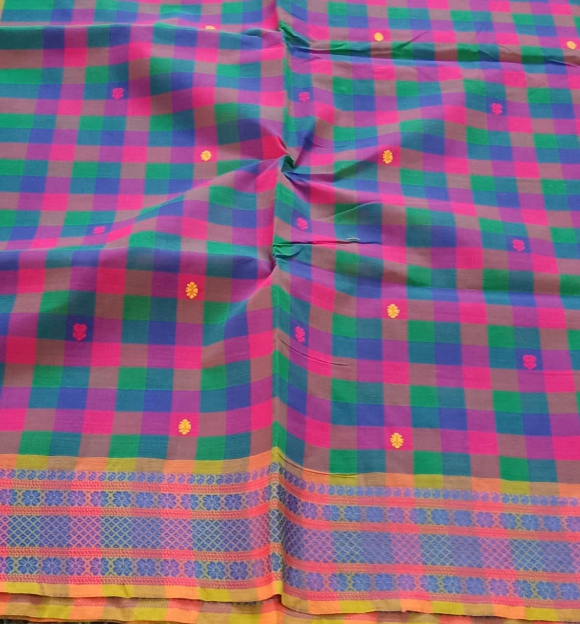Kandangi Handloom Saree - Checks - Pink/Blue/Green