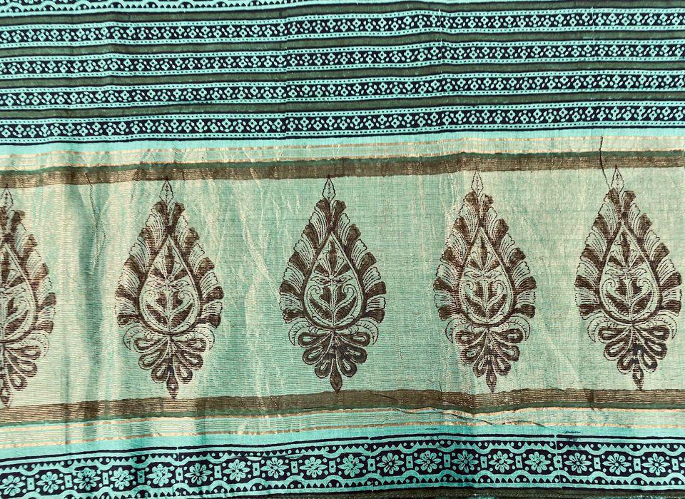 Mangalgiri Saree w/ Bagru Hand block Print- Green