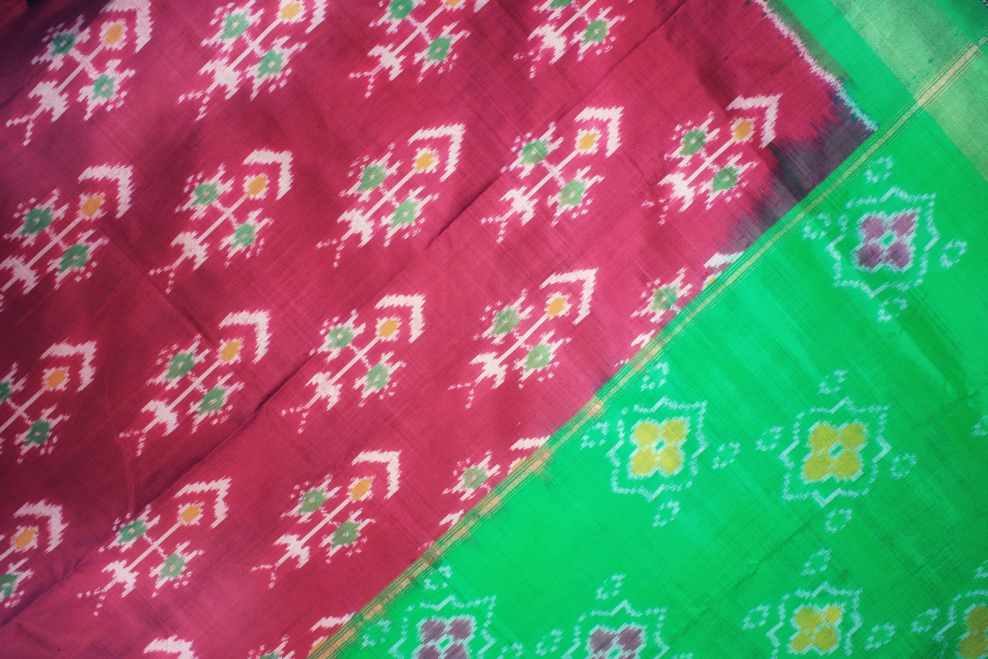 Pochampally Ikat Pure Silk Saree - Fuchsia Pink /Light green
