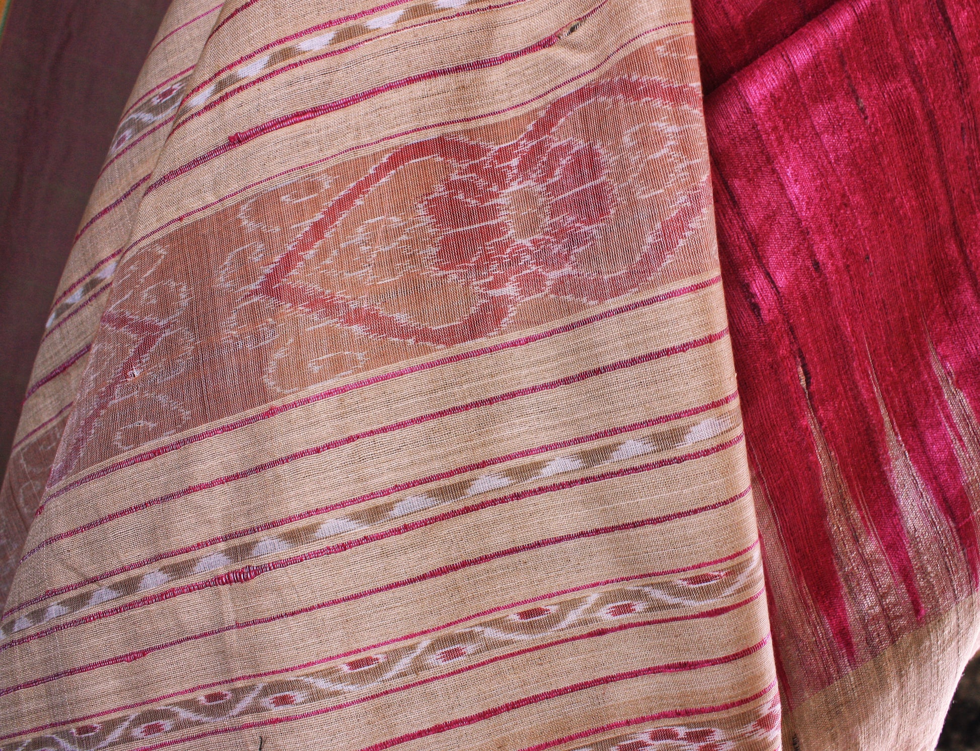 Tussar Ghicha Handspun Handloom: An abundance of Handspun tussar and gheecha textiles and intricate motifs using a unique Jaala technique is what makes this cluster special. The Gopalpur cluster is about 400 years old and fabrics are designed in tussar and ghicha and enhanced with an extra weft technique. Another artisanal skill is their use of hand spun and hand reeled yarns which is done mostly by the female artisans of the family.
